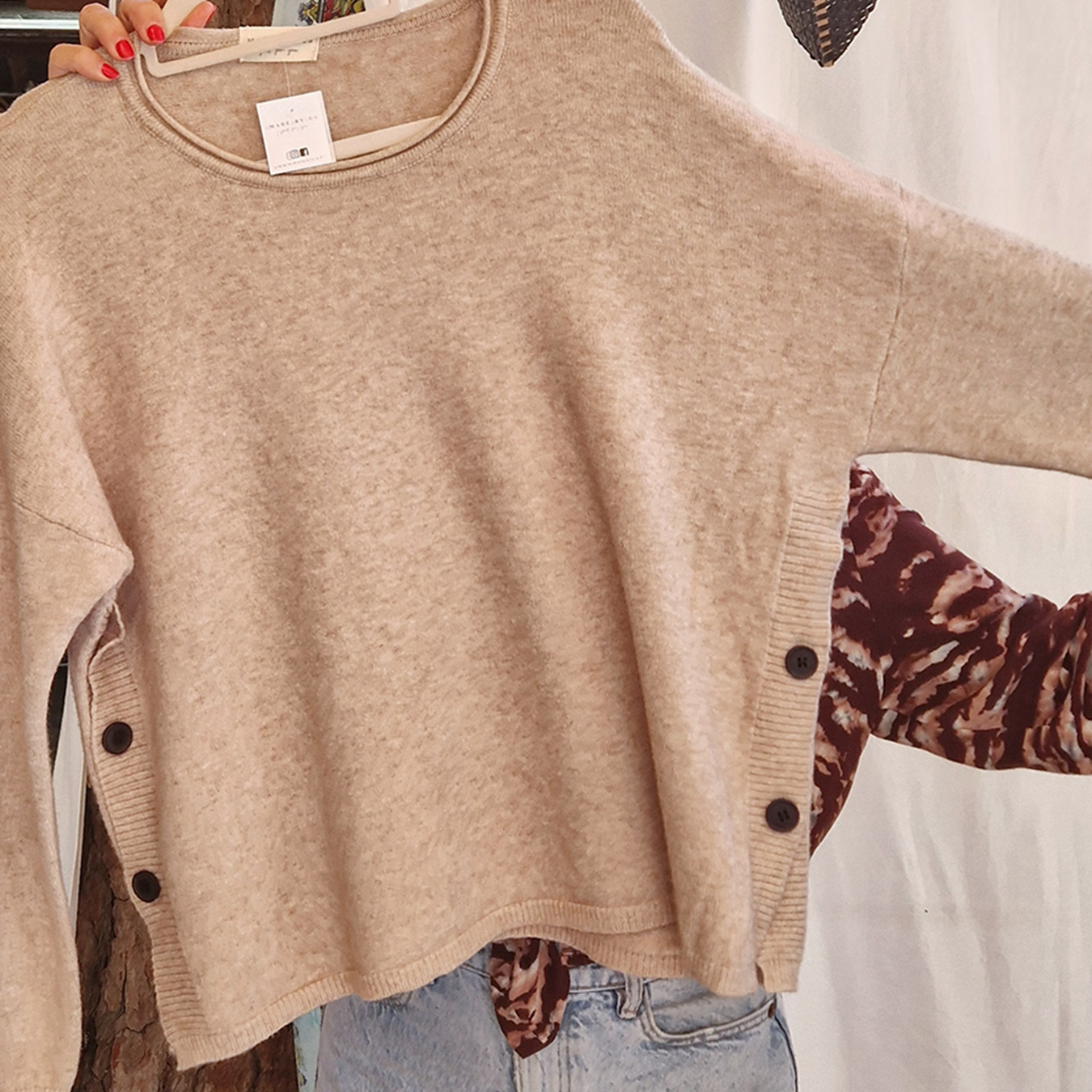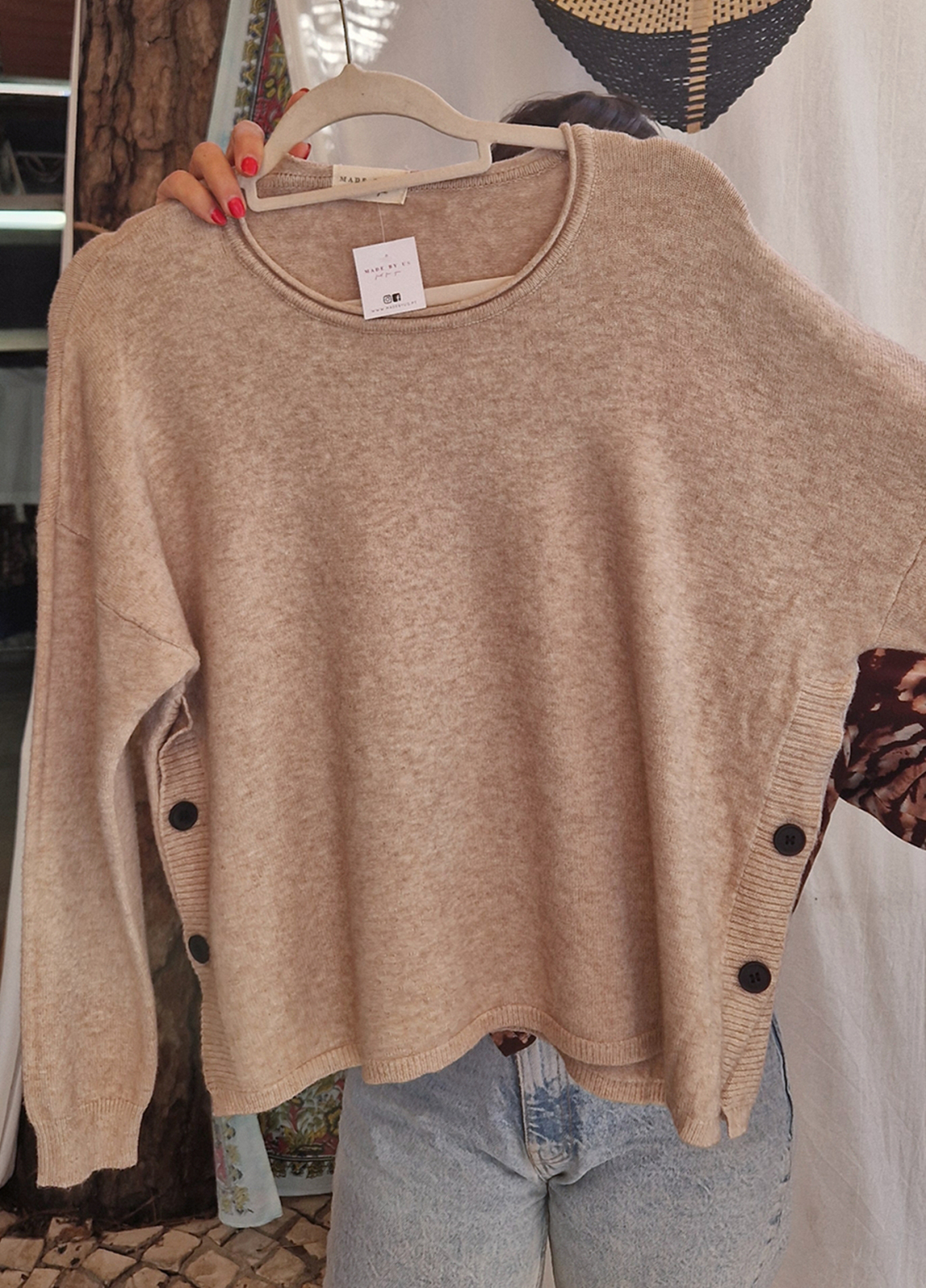 Os botões além de dar um toque super cool, também permitem que possa colocar a parte da frente para dentro das calças e deixar a parte de trás solta.