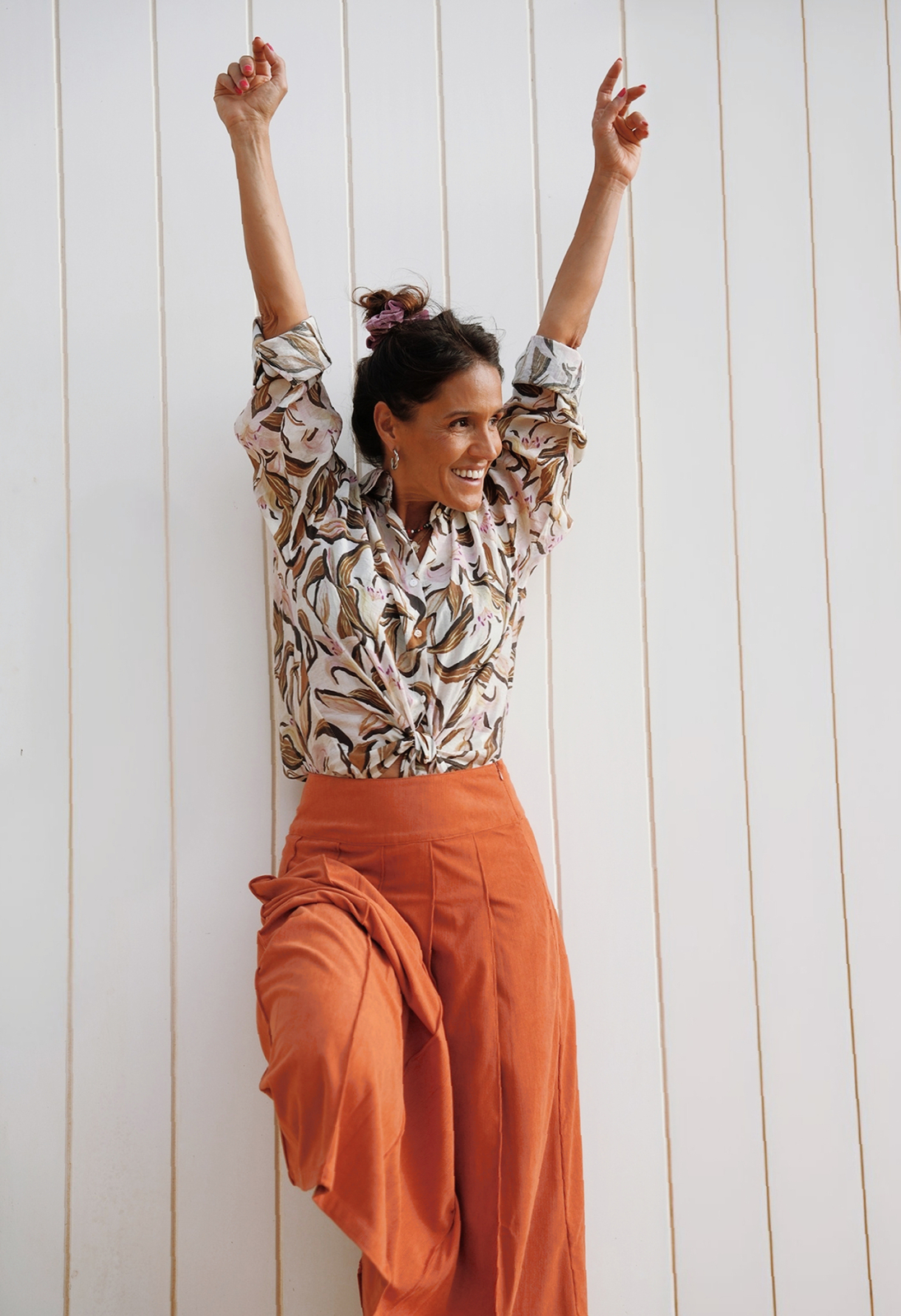 Esta camisa pode ser usada toda fechada ou com um top por baixo.