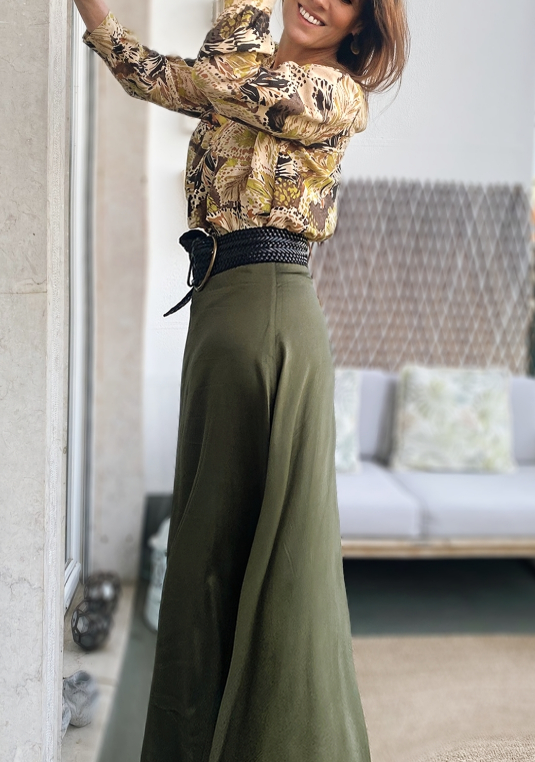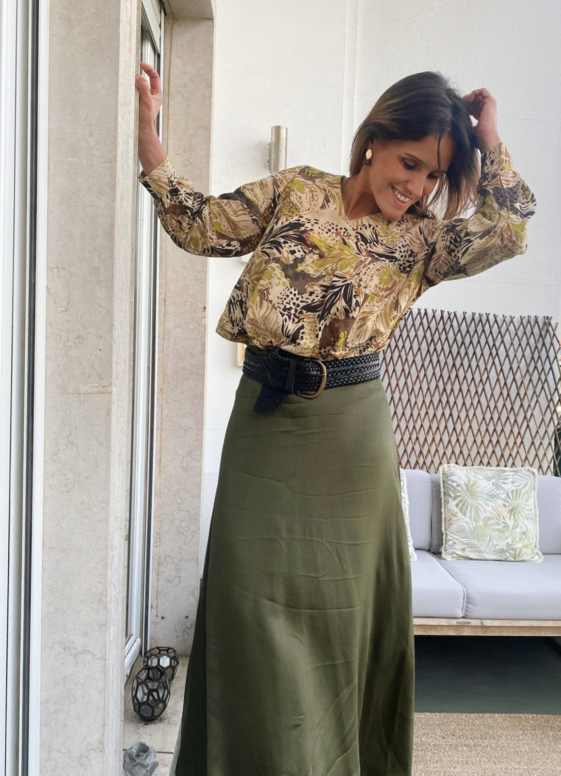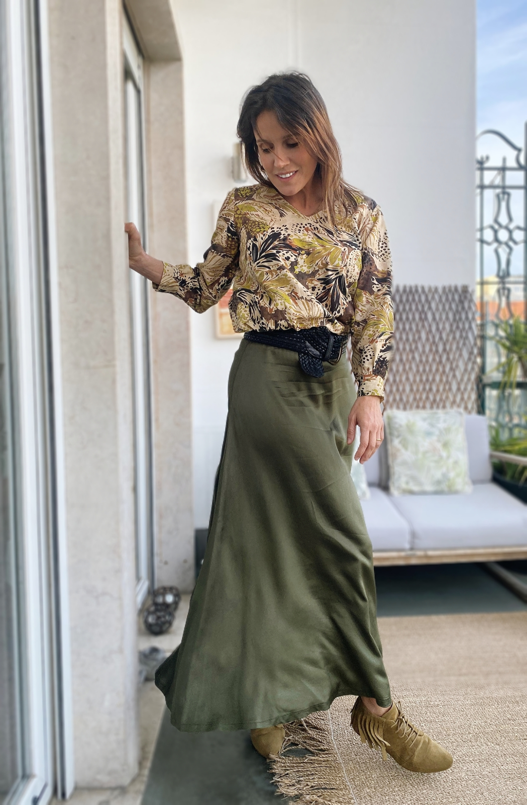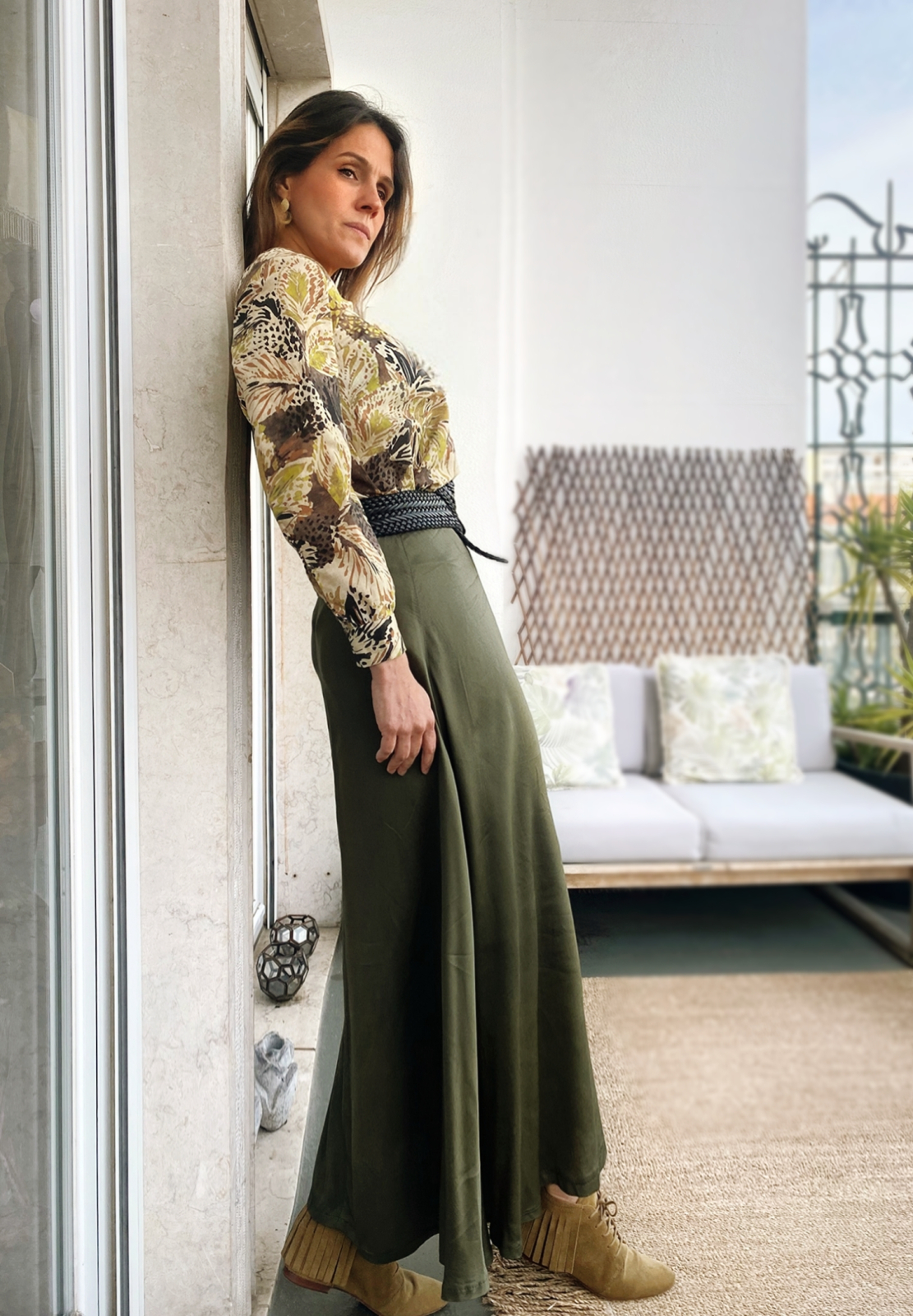 Este vestido é blusado na parte superior por ter elástico em toda a cintura. Fluído e descontraído, este vestido assenta bem em qualquer corpo.