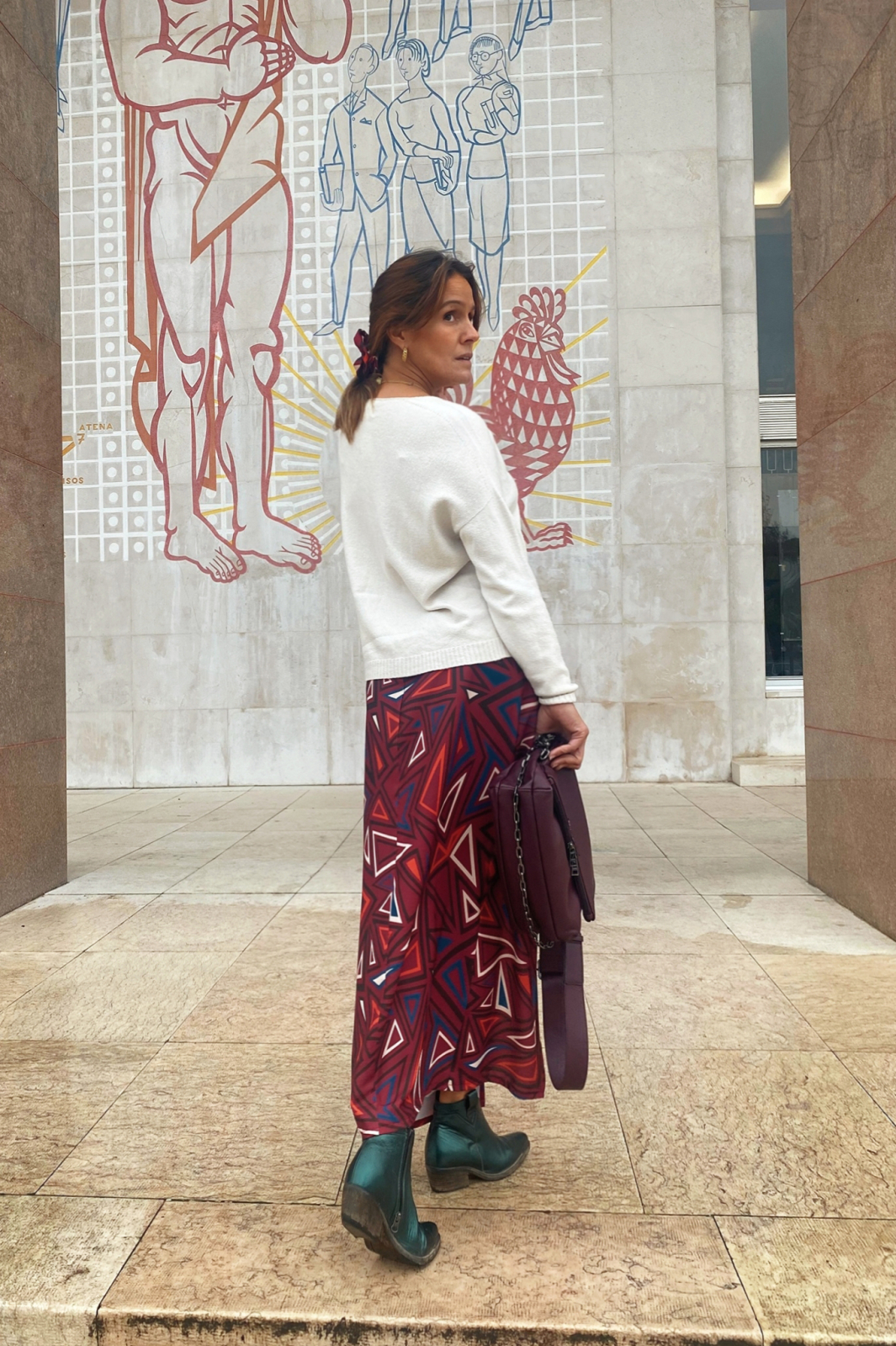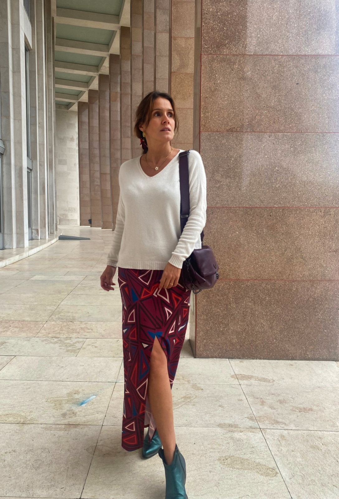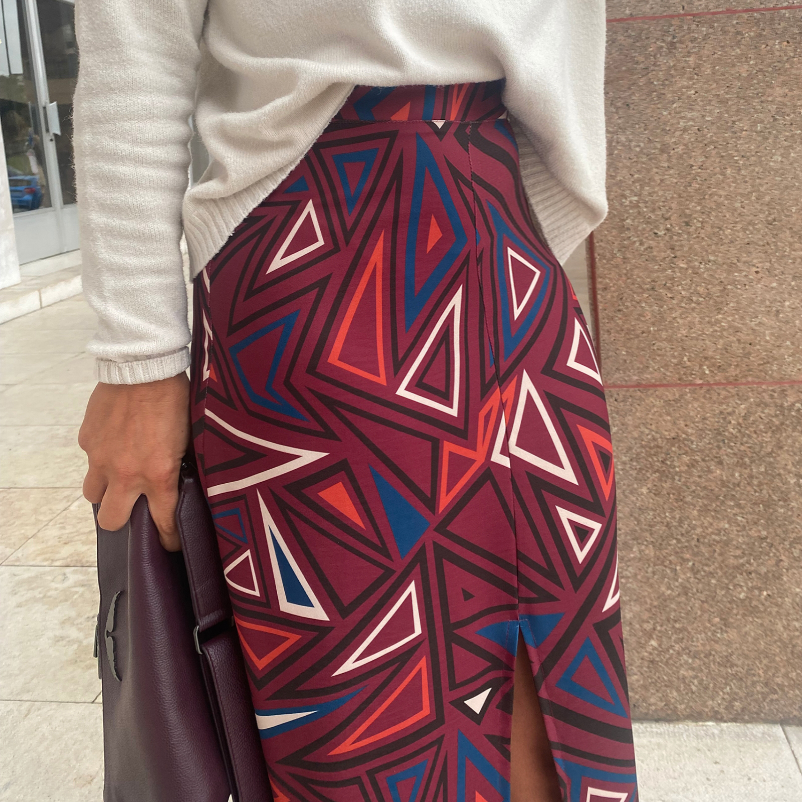 Num tecido muito macio e confortável, com um corte que assenta muito bem no corpo. A racha frontal dá movimento à saia e torna-a numa peça muito feminina.
