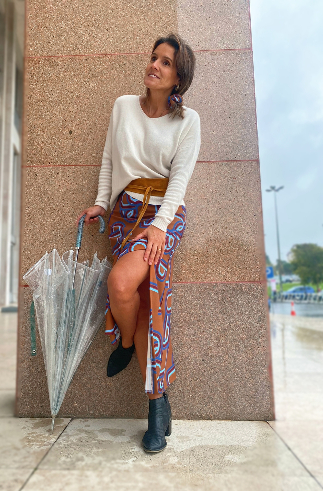 Saia muito confortável e feminina. Com botões na lateral que lhe dão fluidez e movimento.
